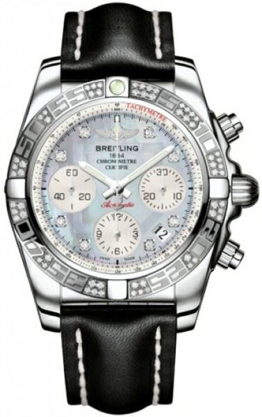 Model: AB0140AA/G712-LST - CASE = [Material:Stainless Steel], [Case Diameter:41], [Case Thickness:15.40mm], [Bezel:Uni-Directional Rotating with Diamonds], [Case Back:Solid], [Water Resistant:300 Meters/1000 Feet], [Crystal:Scratch Resistant Sapphire], DIAL = [Color:Mother of Pearl Chronograph], MOVEMENT = [Type:Automatic Self Winding Chronograph-Chronometer], [Crown:Screw Down], BAND = [Clasp:Tang], [Type:Black Calfskin Leather], (Usually ships in 1 to 2 weeks.)