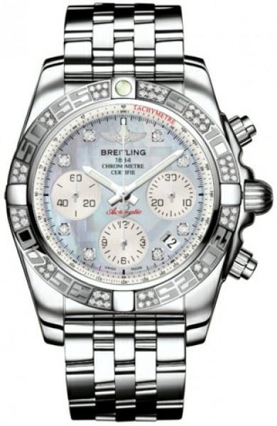 Model: AB0140AA/G712-SS - CASE = [Material:Stainless Steel], [Case Diameter:41], [Case Thickness:15.40mm], [Bezel:Uni-Directional Rotating with Diamonds], [Case Back:Solid], [Water Resistant:300 Meters/1000 Feet], [Crystal:Scratch Resistant Sapphire], DIAL = [Color:Mother of Pearl Chronograph], MOVEMENT = [Type:Automatic Self Winding Chronograph-Chronometer], [Crown:Screw Down], BAND = [Clasp:Double Locking Foldover], [Type:Polished Stainless Steel], (Usually ships in 1 to 2 weeks.)