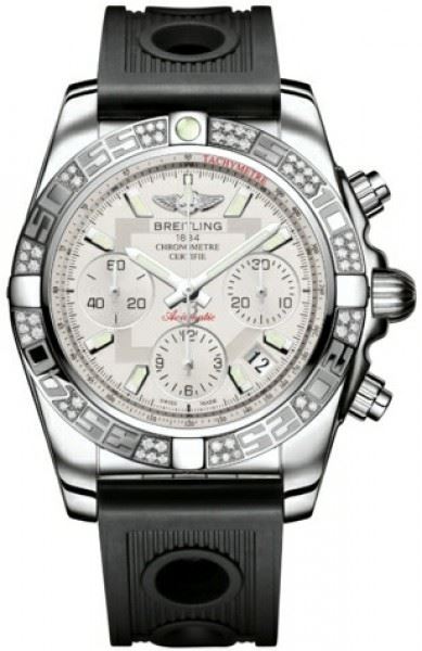 Model: AB0140AA/G711-ORD - CASE = [Material:Stainless Steel], [Case Diameter:41], [Case Thickness:15.40mm], [Bezel:Uni-Directional Rotating with Diamonds], [Case Back:Solid], [Water Resistant:300 Meters/1000 Feet], [Crystal:Scratch Resistant Sapphire], DIAL = [Color:Silver Chronograph], MOVEMENT = [Type:Automatic Self Winding Chronograph-Chronometer], [Crown:Screw Down], BAND = [Clasp:Deployment], [Type:Black Rubber], (Usually ships in 1 to 2 weeks.)