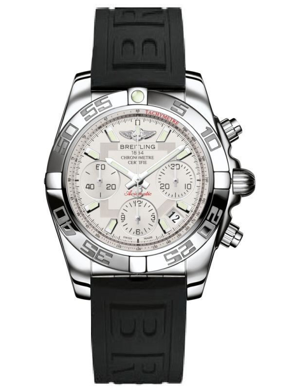 Model: AB014012/G711-DPT - CASE = [Material:Stainless Steel], [Case Diameter:41], [Case Thickness:15.40mm], [Bezel:Uni-Directional Rotating], [Case Back:Solid], [Water Resistant:300 Meters/1000 Feet], [Crystal:Scratch Resistant Sapphire], DIAL = [Color:Silver Chronograph], MOVEMENT = [Type:Automatic Self Winding Chronograph-Chronometer], [Crown:Screw Down], BAND = [Clasp:Deployment], [Type:Black Rubber], (Usually ships in 1 to 2 weeks.)