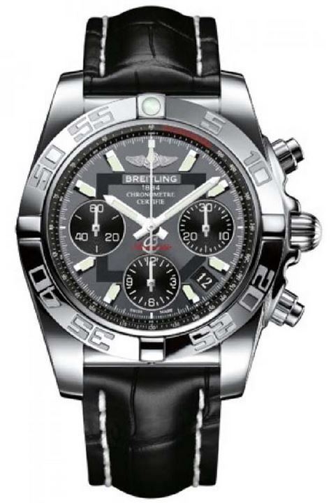 Model: AB014012/BA52-428X - CASE = [Material:Stainless Steel], [Case Diameter:41], [Bezel:Uni-Directional Rotating], [Case Back:Solid], [Water Resistant:300 Meters/1000 Feet], [Crystal:Scratch Resistant Sapphire], DIAL = [Color:Black with Silver Sub-Dials and Date at 4], MOVEMENT = [Type:Automatic Self Winding], [Crown:Screw Down], BAND = [Clasp:Deployment Buckle (also available with tang buckle)], [Type:Crocodile Black Leather], (Usually ships in 1 to 2 weeks.)