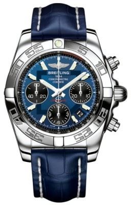 Model: AB014012/C830-CROC - CASE = [Material:Stainless Steel], [Case Diameter:41], [Bezel:Uni-Directional Rotating], [Case Back:Solid], [Water Resistant:300 Meters/1000 Feet], [Crystal:Scratch Resistant Sapphire], DIAL = [Color:Blue with Black Sub-Dials and Date at 4], MOVEMENT = [Type:Automatic Self Winding], [Crown:Screw Down], BAND = [Clasp:Deployment Buckle (also available with tang buckle)], [Type:Crocodile Blue Leather], (Usually ships in 1 to 2 weeks.)