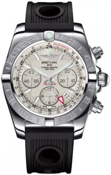 Model: AB042011/G745-ORD - CASE = [Material:Stainless Steel], [Case Diameter:44], [Case Thickness:18.5mm], [Bezel:Bi-Directional Rotating], [Case Back:Solid], [Water Resistant:200 Meters/660 Feet], [Crystal:Scratch Resistant Sapphire],; DIAL = [Color:Silver Chronograph],; MOVEMENT = [Type:Automatic Self Winding Chronograph-Chronometer], [Crown:Screw Down],; BAND = [Clasp:Deployment], [Type:Black Rubber], (Usually ships in 1 to 2 weeks.)