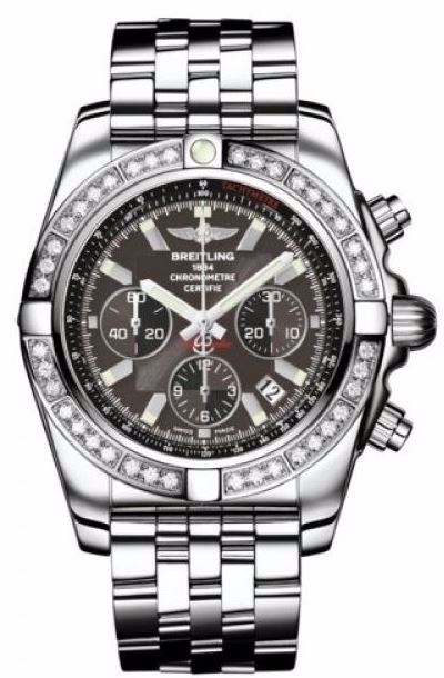 Model: AB011053/M524-743P - CASE = [Material:Stainless Steel], [Case Diameter:43.5], [Case Thickness:17mm], [Bezel:Uni-Directional Rotating with Diamonds], [Case Back:Solid], [Water Resistant:500 Meters/1650 Feet], [Crystal:Scratch Resistant Sapphire],; DIAL = [Color:Black Chronograph],; MOVEMENT = [Type:Automatic Self Winding Chronograph-Chronometer], [Crown:Screw Down],; BAND = [Clasp:Double Locking Foldover], [Type:Polished Stainless Steel], (Usually ships in 1 to 2 weeks.)