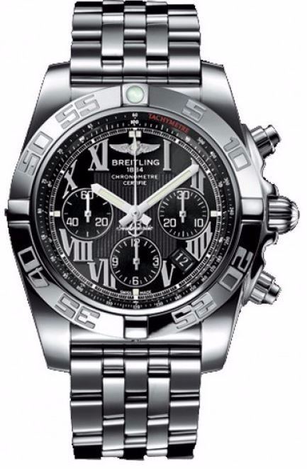 Model: AB011012/B956-375A - CASE = [Material:Stainless Steel], [Case Diameter:43.5], [Case Thickness:17mm], [Bezel:Uni-Directional Rotating], [Case Back:Solid], [Water Resistant:500 Meters/1650 Feet], [Crystal:Scratch Resistant Sapphire],; DIAL = [Color:Black Chronograph],; MOVEMENT = [Type:Automatic Self Winding Chronograph-Chronometer], [Crown:Screw Down],; BAND = [Clasp:Double Locking Foldover], [Type:Polished Stainless Steel], (Usually ships in 1 to 2 weeks.)