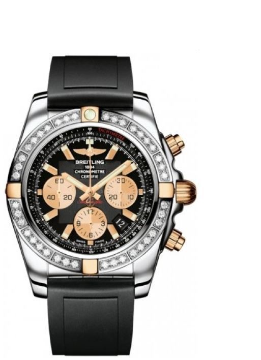 Model: IB011053/B968-DPT - Case,; MATERIALSTAINLESS STEEL & GOLD = [Case Diameter43.5], [Case Thickness17mm], [BezelUni-Directional Rotating with Diamonds], [Case BackSolid], [Water Resistant500 Meters/1650 Feet], [CrystalScratch Resistant Sapphire], Dial,; COLORBLACK CHRONOGRAPH = Movement,; TYPEAUTOMATIC SELF WINDING CHRONOGRAPH-CHRONOMETER = [CrownScrew Down], Band,; CLASPTANG = [TypeBlack Rubber], (Usually ships in 1 to 2 weeks.)