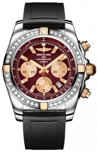 Model: IB011053/K524-DPT - CASE = [Material:Stainless Steel & Gold], [Case Diameter:43.5], [Case Thickness:17mm], [Bezel:Uni-Directional Rotating with Diamonds], [Case Back:Solid], [Water Resistant:500 Meters/1650 Feet], [Crystal:Scratch Resistant Sapphire], DIAL = [Color:Burgundy Chronograph], MOVEMENT = [Type:Automatic Self Winding Chronograph-Chronometer], [Crown:Screw Down], BAND = [Clasp:Tang], [Type:Black Rubber], (Usually ships in 1 to 2 weeks.)