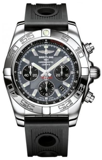 Model: AB011012/F546-ORD - CASE = [Material:Stainless Steel], [Case Diameter:43.5], [Case Thickness:17mm], [Bezel:Uni-Directional Rotating], [Case Back:Solid], [Water Resistant:500 Meters/1650 Feet], [Crystal:Scratch Resistant Sapphire], DIAL = [Color:Grey Chronograph], MOVEMENT = [Type:Automatic Self Winding Chronograph-Chronometer], [Crown:Screw Down], BAND = [Clasp:Deployment], [Type:Black Rubber], (Usually ships in 1 to 2 weeks.)