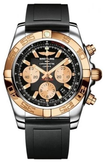 Model: CB011012/B968-DPT - CASE = [Material:Stainless Steel & Gold], [Case Diameter:43.5], [Case Thickness:17mm], [Bezel:Uni-Directional Rotating], [Case Back:Solid], [Water Resistant:500 Meters/1650 Feet], [Crystal:Scratch Resistant Sapphire], DIAL = [Color:Black Chronograph], MOVEMENT = [Type:Automatic Self Winding Chronograph-Chronometer], [Crown:Screw Down], BAND = [Clasp:Tang], [Type:Black Rubber], (Usually ships in 1 to 2 weeks.)