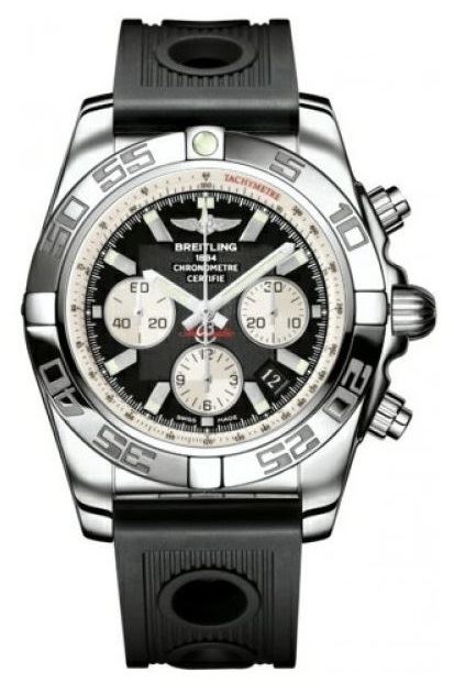 Model: AB011012/B967-ORD - CASE = [Material:Stainless Steel], [Case Diameter:43.5], [Case Thickness:17mm], [Bezel:Uni-Directional Rotating], [Case Back:Solid], [Water Resistant:500 Meters/1650 Feet], [Crystal:Scratch Resistant Sapphire], DIAL = [Color:Black Chronograph], MOVEMENT = [Type:Automatic Self Winding Chronograph-Chronometer], [Crown:Screw Down], BAND = [Clasp:Deployment], [Type:Black Rubber], (Usually ships in 1 to 2 weeks.)