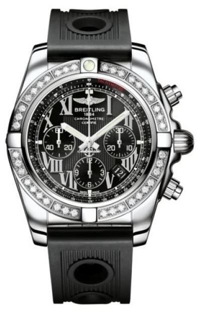 Model: AB011053/B956-ORD - CASE = [Material:Stainless Steel], [Case Diameter:43.5], [Case Thickness:17mm], [Bezel:Uni-Directional Rotating with Diamonds], [Case Back:Solid], [Water Resistant:500 Meters/1650 Feet], [Crystal:Scratch Resistant Sapphire], DIAL = [Color:Black Chronograph], MOVEMENT = [Type:Automatic Self Winding Chronograph-Chronometer], [Crown:Screw Down], BAND = [Clasp:Deployment], [Type:Black Rubber], (Usually ships in 4 to 8 weeks.)