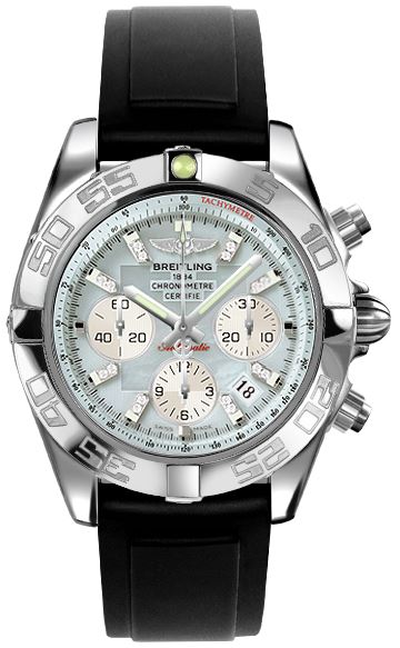 Model: AB011012/G686-DPT - CASE = [Material:Stainless Steel], [Case Diameter:43.5], [Case Thickness:17mm], [Bezel:Uni-Directional Rotating], [Case Back:Solid], [Water Resistant:500 Meters/1650 Feet], [Crystal:Scratch Resistant Sapphire], DIAL = [Color:Mother of Pearl Chronograph], MOVEMENT = [Type:Automatic Self Winding Chronograph-Chronometer], [Crown:Screw Down], BAND = [Clasp:Tang], [Type:Black Rubber], (Usually ships in 1 to 2 weeks.)