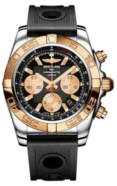 Model: CB011012/B968-ORD - CASE = [Material:Stainless Steel & Gold], [Case Diameter:43.5], [Case Thickness:17mm], [Bezel:Uni-Directional Rotating], [Case Back:Solid], [Water Resistant:500 Meters/1650 Feet], [Crystal:Scratch Resistant Sapphire], DIAL = [Color:Black Chronograph], MOVEMENT = [Type:Automatic Self Winding Chronograph-Chronometer], [Crown:Screw Down], BAND = [Clasp:Deployment], [Type:Black Rubber], (Usually ships in 1 to 2 weeks.)