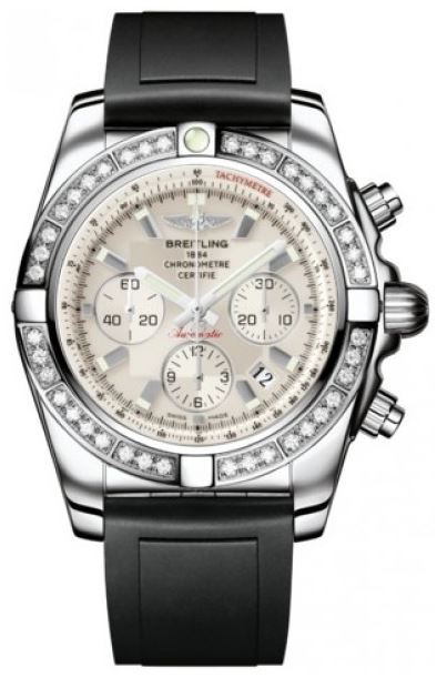 Model: AB011053/G684-DPT - CASE = [Material:Stainless Steel], [Case Diameter:43.5], [Case Thickness:17mm], [Bezel:Uni-Directional Rotating with Diamonds], [Case Back:Solid], [Water Resistant:500 Meters/1650 Feet], [Crystal:Scratch Resistant Sapphire], DIAL = [Color:Silver Chronograph], MOVEMENT = [Type:Automatic Self Winding Chronograph-Chronometer], [Crown:Screw Down], BAND = [Clasp:Tang], [Type:Black Rubber], (Usually ships in 1 to 2 weeks.)
