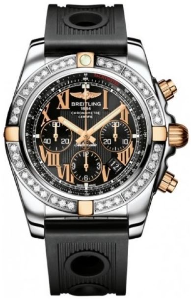 Model: IB011053/B957-ORD - CASE = [Material:Stainless Steel & Gold], [Case Diameter:43.5], [Case Thickness:17mm], [Bezel:Uni-Directional Rotating with Diamonds], [Case Back:Solid], [Water Resistant:500 Meters/1650 Feet], [Crystal:Scratch Resistant Sapphire], DIAL = [Color:Black Chronograph], MOVEMENT = [Type:Automatic Self Winding Chronograph-Chronometer], [Crown:Screw Down], BAND = [Clasp:Deployment], [Type:Black Rubber], (Usually ships in 1 to 2 weeks.)
