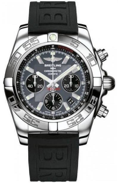 Model: AB011012/F546-DPT - CASE = [Material:Stainless Steel], [Case Diameter:43.5], [Case Thickness:17mm], [Bezel:Uni-Directional Rotating], [Case Back:Solid], [Water Resistant:500 Meters/1650 Feet], [Crystal:Scratch Resistant Sapphire], DIAL = [Color:Grey Chronograph], MOVEMENT = [Type:Automatic Self Winding Chronograph-Chronometer], [Crown:Screw Down], BAND = [Clasp:Tang], [Type:Black Rubber], (Usually ships in 1 to 2 weeks.)
