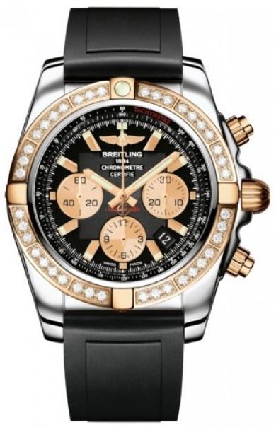Model: CB011053/B968-DPT - CASE = [Material:Stainless Steel & Gold], [Case Diameter:43.5], [Case Thickness:17mm], [Bezel:Uni-Directional Rotating with Diamonds], [Case Back:Solid], [Water Resistant:500 Meters/1650 Feet], [Crystal:Scratch Resistant Sapphire], DIAL = [Color:Black Chronograph], MOVEMENT = [Type:Automatic Self Winding Chronograph-Chronometer], [Crown:Screw Down], BAND = [Clasp:Tang], [Type:Black Rubber], (Usually ships in 1 to 2 weeks.)