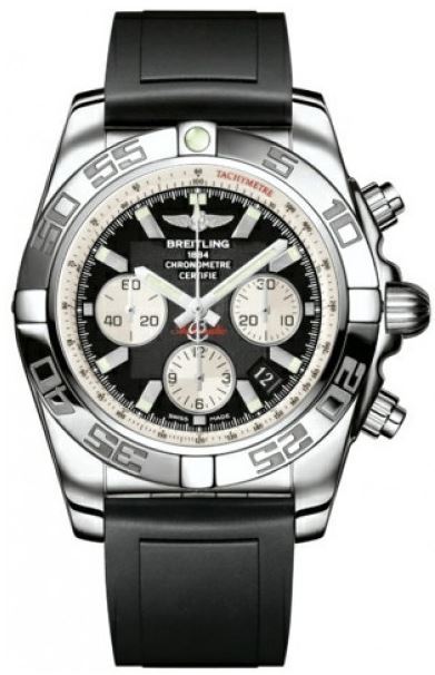 Model: AB011012/B967-DPT - CASE = [Material:Stainless Steel], [Case Diameter:43.5], [Case Thickness:17mm], [Bezel:Uni-Directional Rotating], [Case Back:Solid], [Water Resistant:500 Meters/1650 Feet], [Crystal:Scratch Resistant Sapphire], DIAL = [Color:Black Chronograph], MOVEMENT = [Type:Automatic Self Winding Chronograph-Chronometer], [Crown:Screw Down], BAND = [Clasp:Tang], [Type:Black Rubber], (Usually ships in 1 to 2 weeks.)
