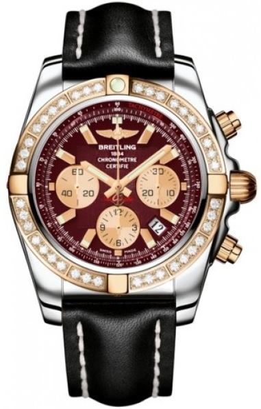 Model: CB011053/K524-LST - CASE = [Material:Stainless Steel & Gold], [Case Diameter:43.5], [Case Thickness:17mm], [Bezel:Uni-Directional Rotating with Diamonds], [Case Back:Solid], [Water Resistant:500 Meters/1650 Feet], [Crystal:Scratch Resistant Sapphire], DIAL = [Color:Burgundy Chronograph], MOVEMENT = [Type:Automatic Self Winding Chronograph-Chronometer], [Crown:Screw Down], BAND = [Clasp:Tang], [Type:Black Calfskin Leather], (Usually ships in 1 to 2 weeks.)