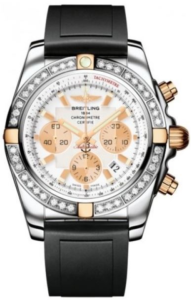 Model: IB011053/A696-DPT - CASE = [Material:Stainless Steel & Gold], [Case Diameter:43.5], [Case Thickness:17mm], [Bezel:Uni-Directional Rotating with Diamonds], [Case Back:Solid], [Water Resistant:500 Meters/1650 Feet], [Crystal:Scratch Resistant Sapphire], DIAL = [Color:White Chronograph], MOVEMENT = [Type:Automatic Self Winding Chronograph-Chronometer], [Crown:Screw Down], BAND = [Clasp:Tang], [Type:Black Rubber], (Usually ships in 1 to 2 weeks.)