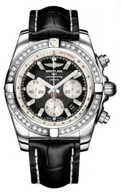 Model: AB011053/B967-CROCD - CASE = [Material:Stainless Steel], [Case Diameter:43.5], [Case Thickness:17mm], [Bezel:Uni-Directional Rotating with Diamonds], [Case Back:Solid], [Water Resistant:500 Meters/1650 Feet], [Crystal:Scratch Resistant Sapphire], DIAL = [Color:Black Chronograph], MOVEMENT = [Type:Automatic Self Winding Chronograph-Chronometer], [Crown:Screw Down], BAND = [Clasp:Deployment], [Type:Black Crocodile Leather], (Usually ships in 1 to 2 weeks.)