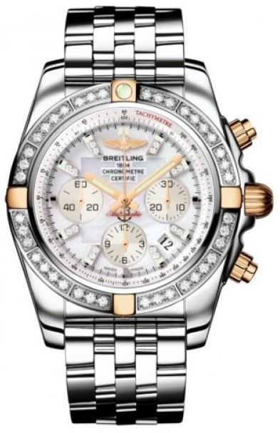 Model: IB011053/A698-SS - CASE = [Material:Stainless Steel & Gold], [Case Diameter:43.5], [Case Thickness:17mm], [Bezel:Uni-Directional Rotating with Diamonds], [Case Back:Solid], [Water Resistant:500 Meters/1650 Feet], [Crystal:Scratch Resistant Sapphire], DIAL = [Color:Mother of Pearl Chronograph], MOVEMENT = [Type:Automatic Self Winding Chronograph-Chronometer], [Crown:Screw Down], BAND = [Clasp:Double Locking Foldover], [Type:Polished Stainless Steel], (Usually ships in 1 to 2 weeks.)