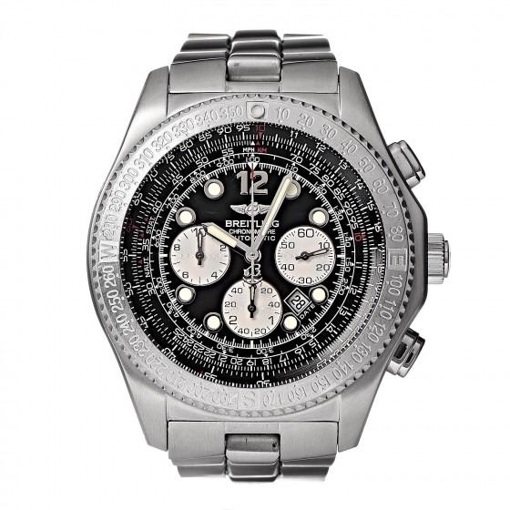 Black watch is crafted of stainless steel and features a black colored dial, three chronograph sub dials, luminescent hour markers and hands, a rotating bezel, and a date display.