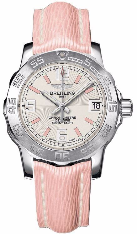 Model: A7738711/G765-238X - CASE = [Material:Stainless Steel], [Case Diameter:33], [Case Thickness:11.60mm], [Bezel:Uni-Directional Rotating], [Case Back:Solid], [Water Resistant:500 Meters/1650 Feet], [Crystal:Scratch Resistant Sapphire],; DIAL = [Color:Silver],; MOVEMENT = [Type:Battery Powered Quartz], [Crown:Screw Down],; BAND = [Clasp:Tang], [Type:Pink Sahara Leather], (Usually ships in 4 to 8 weeks.)