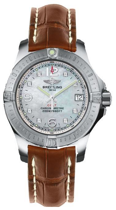 Model: A7738811/A769/779P - Case,; MATERIALSTAINLESS STEEL = [Case Diameter33], [Case Thickness9.10mm], [BezelUni-Directional Rotating], [Case BackScrewed In], [Water Resistant200 Meters - 660 Feet], [CrystalScratch Resistant Sapphire], Dial,; COLORMOTHER OF PEARL WITH DIAMONDS = Movement,; TYPEQUARTZ = [CrownScrew Down], Band,; CLASPDEPLOYMENT = [TypeBrown Alligator Leather], (Usually ships in 1 to 2 weeks.)