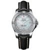 Model: A7738811/A769-208X - CASE = [Material:Stainless steel], [Case Diameter:33], [Case Thickness:9.10mm], [Bezel:Uni-Directional Rotating], [Case Back:Screwed In], [Water Resistant:200 Meters - 660 Feet], [Crystal:Scratch Resistant Sapphire], DIAL = [Color:Mother of Pearl with Diamonds], MOVEMENT = [Type:Quartz], [Crown:Screw Down], BAND = [Clasp:Tang], [Type:Black Leather], (Usually ships in 1 to 2 weeks.)
