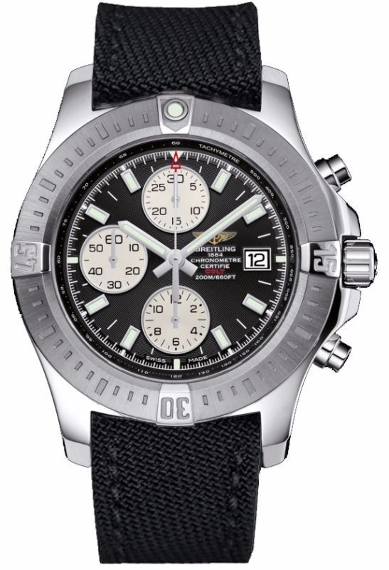 Model: A1338811/BD83-103W - CASE = [Material:Stainless Steel], [Case Diameter:44], [Bezel:Uni-Directional Rotating], [Case Back:Screw Down], [Water Resistant:200 Meters/660 Feet], [Crystal:Scratch Resistant Sapphire],; DIAL = [Color:Black],; MOVEMENT = [Type:Self Winding Automatic Chronograph], [Crown:Screw Down],; BAND = [Clasp:Tang], [Type:Black Canvas], (Usually ships in 2 to 4 weeks.)