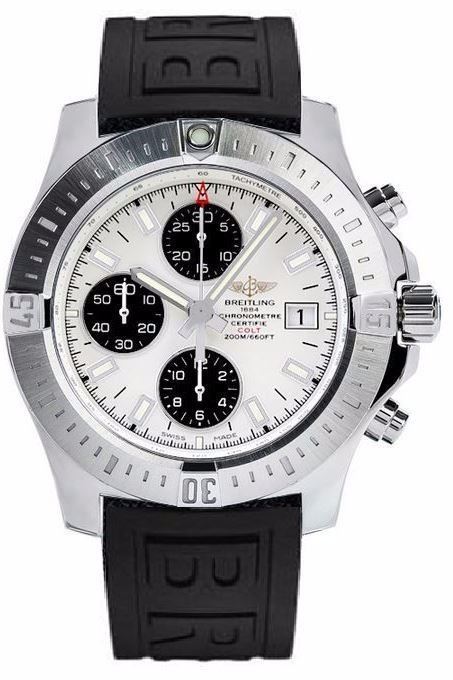 Model: A1338811/G804-153S - CASE = [Material:Stainless Steel], [Case Diameter:44], [Bezel:Uni-Directional Rotating], [Case Back:Screw Down], [Water Resistant:200 Meters/660 Feet], [Crystal:Scratch Resistant Sapphire],; DIAL = [Color:White],; MOVEMENT = [Type:Self Winding Automatic Chronograph], [Crown:Screw Down],; BAND = [Clasp:Deployment], [Type:Black DPT3 w/ Breitling on Strap], (Usually ships in 2 to 4 weeks.)