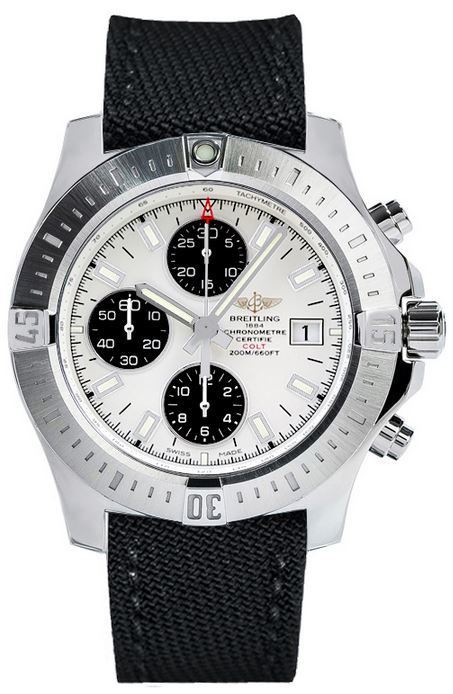 Model: A1338811/G804-103W - CASE = [Material:Stainless Steel], [Case Diameter:44], [Bezel:Uni-Directional Rotating], [Case Back:Screw Down], [Water Resistant:200 Meters/660 Feet], [Crystal:Scratch Resistant Sapphire], DIAL = [Color:White], MOVEMENT = [Type:Self Winding Automatic Chronograph], [Crown:Screw Down], BAND = [Clasp:Tang], [Type:Black Canvas], (Usually ships in 1 to 2 weeks.)
