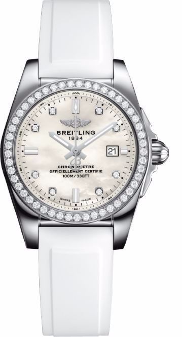 Model: A7234853/A785-249S - CASE = [Material:Stainless Steel], [Case Diameter:29], [Case Thickness:8.9mm], [Bezel:Fixed With Diamonds], [Case Back:Solid], [Water Resistant:100 Meters - 330 Feet], [Crystal:Scratch Resistant Sapphire],; DIAL = [Color:Mother of Pearl With Diamonds],; MOVEMENT = [Type:Quartz], [Crown:Push In],; BAND = [Clasp:Folding], [Type:White Rubber], (Usually ships in 4 to 8 weeks.)