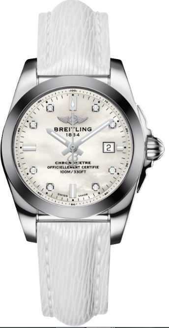 Model: W7234812/A785-274X - CASE = [Material:Stainless Steel], [Case Diameter:29], [Case Thickness:8.9mm], [Bezel:Fixed], [Case Back:Solid], [Water Resistant:100 Meters - 330 Feet], [Crystal:Scratch Resistant Sapphire], DIAL = [Color:Mother of Pearl With Diamonds], MOVEMENT = [Type:Quartz], [Crown:Push In], BAND = [Clasp:Tang], [Type:White Alligator Leather], (Usually ships in 4 to 8 weeks.)