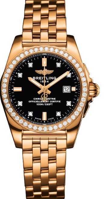 Model: H7234853/BE86-791H - CASE = [Material:18kt Rose Gold], [Case Diameter:29], [Case Thickness:8.9mm], [Bezel:Fixed With Diamonds], [Case Back:Solid], [Water Resistant:100 Meters - 330 Feet], [Crystal:Scratch Resistant Sapphire], DIAL = [Color:Black With Diamonds], MOVEMENT = [Type:Quartz], [Crown:Push In], BAND = [Clasp:Tang], [Type:Red Alligator Leather], (Usually ships in 4 to 8 weeks.)