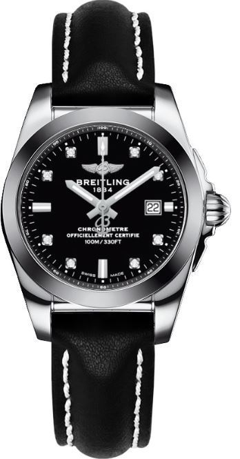 Model: W7234812/BE50-477X - CASE = [Material:Stainless Steel], [Case Diameter:29], [Case Thickness:8.9mm], [Bezel:Fixed], [Case Back:Solid], [Water Resistant:100 Meters - 330 Feet], [Crystal:Scratch Resistant Sapphire], DIAL = [Color:Black With Diamonds], MOVEMENT = [Type:Quartz], [Crown:Push In], BAND = [Clasp:Tang], [Type:Black Leather], (Usually ships in 4 to 8 weeks.)