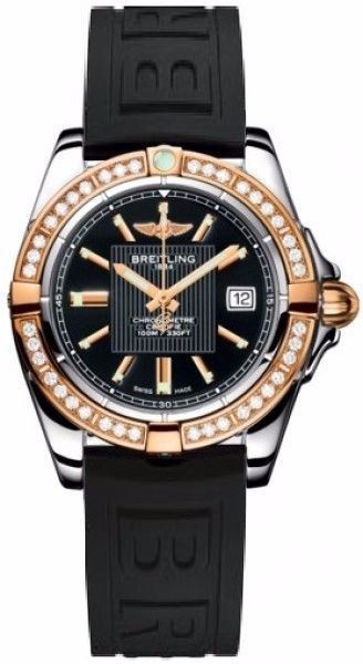 Model: C71356LA/BA12-DPT - CASE = [Material:Polished Stainless Steel and Rose Gold], [Case Diameter:31.8], [Case Thickness:12.70mm], [Bezel:Uni-Directional Rotating with Diamonds], [Case Back:Solid], [Water Resistant:100 Meters/330 Feet], [Crystal:Scratch Resistant Sapphire],; DIAL = [Color:Trophy Black],; MOVEMENT = [Type:Battery Powered Quartz-Chronometer],; BAND = [Clasp:Tang], [Type:Black Rubber], (Usually ships in 1 to 2 weeks.)