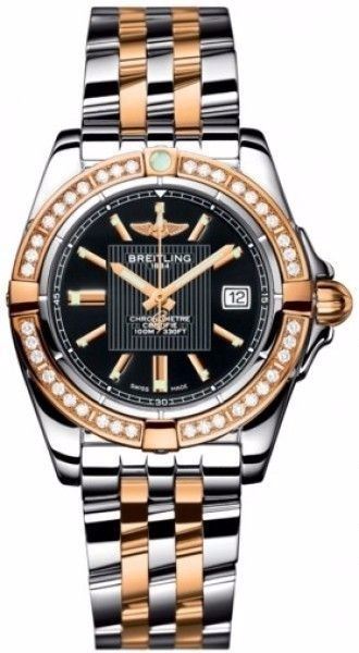 Model: C71356LA/BA12-376C - CASE = [Material:Polished Stainless Steel and Rose Gold], [Case Diameter:31.8], [Case Thickness:12.70mm], [Bezel:Uni-Directional Rotating with Diamonds], [Case Back:Solid], [Water Resistant:100 Meters/330 Feet], [Crystal:Scratch Resistant Sapphire],; DIAL = [Color:Trophy Black],; MOVEMENT = [Type:Battery Powered Quartz-Chronometer],; BAND = [Clasp:Double Locking Foldover], [Type:Polished Stainless Steel and Rose Gold], (Usually ships in 1 to 2 weeks.)