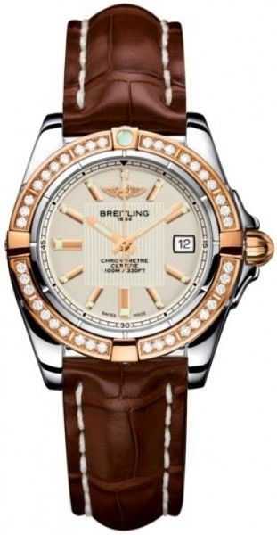 Model: C71356LA/G704-CROCT - CASE = [Material:Polished Stainless Steel and Rose Gold], [Case Diameter:31.8], [Case Thickness:12.70mm], [Bezel:Uni-Directional Rotating with Diamonds], [Case Back:Solid], [Water Resistant:100 Meters/330 Feet], [Crystal:Scratch Resistant Sapphire], DIAL = [Color:Sierra Silver], MOVEMENT = [Type:Battery Powered Quartz-Chronometer], BAND = [Clasp:Tang], [Type:Brown Crocodile Leather], (Usually ships in 1 to 2 weeks.)