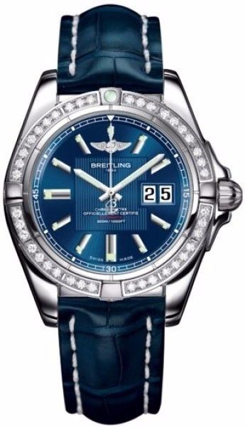 Model: A49350LA/C806-CROCD - CASE = [Material:Stainless Steel], [Case Diameter:41], [Case Thickness:14mm], [Bezel:Uni-Directional Rotating with Diamonds], [Case Back:Solid], [Water Resistant:300 Meters/1000 Feet], [Crystal:Scratch Resistant Sapphire],; DIAL = [Color:Metallica Blue],; MOVEMENT = [Type:Automatic Self Winding-Chronometer],; BAND = [Clasp:Deployment], [Type:Blue Crocodile Leather],  (Usually ships in 1 to 2 weeks.)
