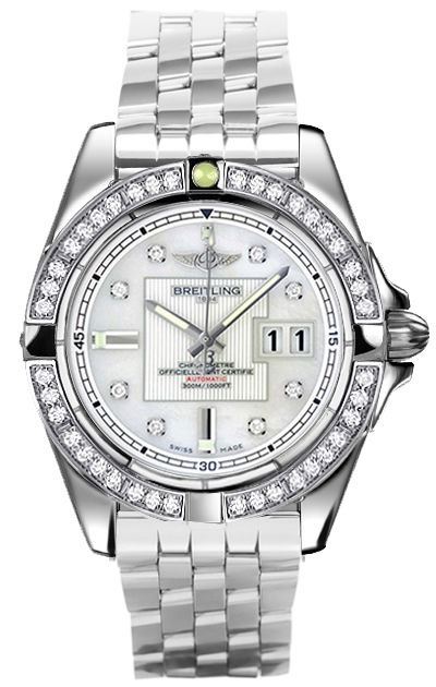 Model: A49350LA/A702-366A - CASE = [Material:Polished Stainless Steel], [Case Diameter:41], [Case Thickness:14mm], [Bezel:Set with 40 Diamonds, Uni-Directional Rotating], [Case Back:Solid], [Water Resistant:300 Meters / 1000 Feet], [Crystal:Scratch Resistant Sapphire],; DIAL = [Color:Mother of Pearl with 8 Diamond Hour Markers and Large Double Date at 3],; MOVEMENT = [Type:Automatic Self Winding Chronometer], [Crown:Screw Down],; BAND = [Clasp:Deployment Buckle], [Type:Stainless Steel], (Usually ships in 1 to 2 weeks.)