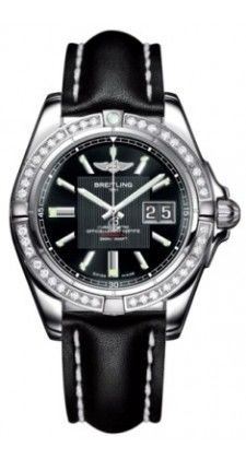 Model: A49350LA/BA07-428X - CASE = [Material:Polished Stainless Steel], [Case Diameter:41], [Case Thickness:14mm], [Bezel:Set with 40 Diamonds, Uni-Directional Rotating], [Case Back:Solid], [Water Resistant:300 Meters / 1000 Feet], [Crystal:Scratch Resistant Sapphire],; DIAL = [Color:Ivory Black with Index Hour Markers and Large Double Date at 3],; MOVEMENT = [Type:Automatic Self Winding Chronometer], [Crown:Screw Down],; BAND = [Clasp:Tang Buckle (also available with deployment buckle)], [Type:Black Calfskin Leather], (Usually ships in 1 to 2 weeks.)