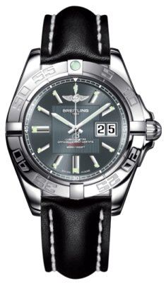 Model: A49350L2/F549-LST - Case,; MATERIALPOLISHED STAINLESS STEEL = [Case Diameter41], [Case Thickness14mm], [BezelUni-Directional Rotating], [Case BackSolid], [Water Resistant300 Meters / 1000 Feet], [CrystalScratch Resistant Sapphire], Dial,; COLORTOMCAT GREY WITH INDEX HOUR MARKERS AND LARGE DOUBLE DATE AT 3 = Movement,; TYPEAUTOMATIC SELF WINDING CHRONOMETER = [CrownScrew Down], Band,; CLASPTANG BUCKLE (ALSO AVAILABLE WITH DEPLOYMENT BUCKLE) = [TypeBlack Calfskin Leather], (Usually ships in 1 to 2 weeks.)