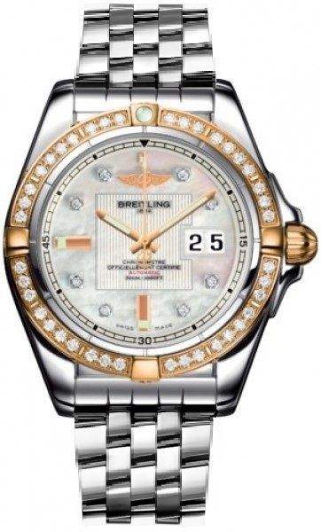 Model: C49350LA/A706-SS - CASE = [Material:Polished Stainless Steel and Rose Gold], [Case Diameter:41], [Case Thickness:14mm], [Bezel:Uni-Directional Rotating with Diamonds], [Case Back:Solid], [Water Resistant:300 Meters/1000 Feet], [Crystal:Scratch Resistant Sapphire], DIAL = [Color:Mother of Pearl with Diamond Hour Markers], MOVEMENT = [Type:Automatic Self Winding-Chronometer], BAND = [Clasp:Double Locking Foldover], [Type:Polished Stainless Steel], (Usually ships in 1 to 2 weeks.)