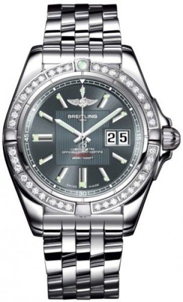 Model: A49350LA/F549-366A - CASE = [Material:Stainless Steel], [Case Diameter:41], [Case Thickness:14mm], [Bezel:Uni-Directional Rotating with Diamonds], [Case Back:Solid], [Water Resistant:300 Meters/1000 Feet], [Crystal:Scratch Resistant Sapphire], DIAL = [Color:Tomcat Grey], MOVEMENT = [Type:Automatic Self Winding-Chronometer], BAND = [Clasp:Double Locking Foldover], [Type:Polished Stainless Steel], (Usually ships in 1 to 2 weeks.)