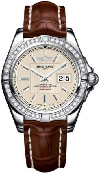 Model: A49350LA/G699-722P - CASE = [Material:Stainless Steel], [Case Diameter:41], [Case Thickness:14mm], [Bezel:Uni-Directional Rotating with Diamonds], [Case Back:Solid], [Water Resistant:300 Meters/1000 Feet], [Crystal:Scratch Resistant Sapphire], DIAL = [Color:Sierra Silver], MOVEMENT = [Type:Automatic Self Winding-Chronometer], BAND = [Clasp:Deployment], [Type:Brown Crocodile Leather], (Usually ships in 1 to 2 weeks.)