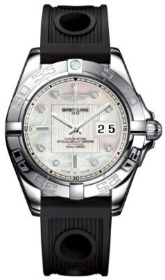 Model: A49350L2/A702-ORD - CASE = [Material:Polished Stainless Steel], [Case Diameter:41], [Case Thickness:14mm], [Bezel:Uni-Directional Rotating], [Case Back:Solid], [Water Resistant:300 Meters / 1000 Feet], [Crystal:Scratch Resistant Sapphire], DIAL = [Color:White Mother of Pearl with 8 Diamond Hour Markers and Large Double Date at 3], MOVEMENT = [Type:Automatic Self Winding Chronometer], [Crown:Screw Down], BAND = [Clasp:Deployment Buckle], [Type:Black Ocean Racer Rubber], (Usually ships in 1 to 2 weeks.)