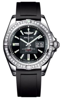 Model: A49350LA/BA07-DPT - CASE = [Material:Polished Stainless Steel], [Case Diameter:41], [Case Thickness:14mm], [Bezel:Set with 40 Diamonds, Uni-Directional Rotating], [Case Back:Solid], [Water Resistant:300 Meters / 1000 Feet], [Crystal:Scratch Resistant Sapphire], DIAL = [Color:Ivory Black with Index Hour Markers and Large Double Date at 3], MOVEMENT = [Type:Automatic Self Winding Chronometer], [Crown:Screw Down], BAND = [Clasp:Tang Buckle], [Type:Black Diver Pro ll Rubber],  (Usually ships in 1 to 2 weeks.)