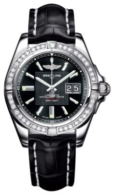 Model: A49350LA/BA07-CROCD - CASE = [Material:Polished Stainless Steel], [Case Diameter:41], [Case Thickness:14mm], [Bezel:Set with 40 Diamonds, Uni-Directional Rotating], [Case Back:Solid], [Water Resistant:300 Meters / 1000 Feet], [Crystal:Scratch Resistant Sapphire], DIAL = [Color:Ivory Black with Index Hour Markers and Large Double Date at 3], MOVEMENT = [Type:Automatic Self Winding Chronometer], [Crown:Screw Down], BAND = [Clasp:Deployment Buckle (also available with tang buckle)], [Type:Black Crocodile Leather], (Usually ships in 1 to 2 weeks.)